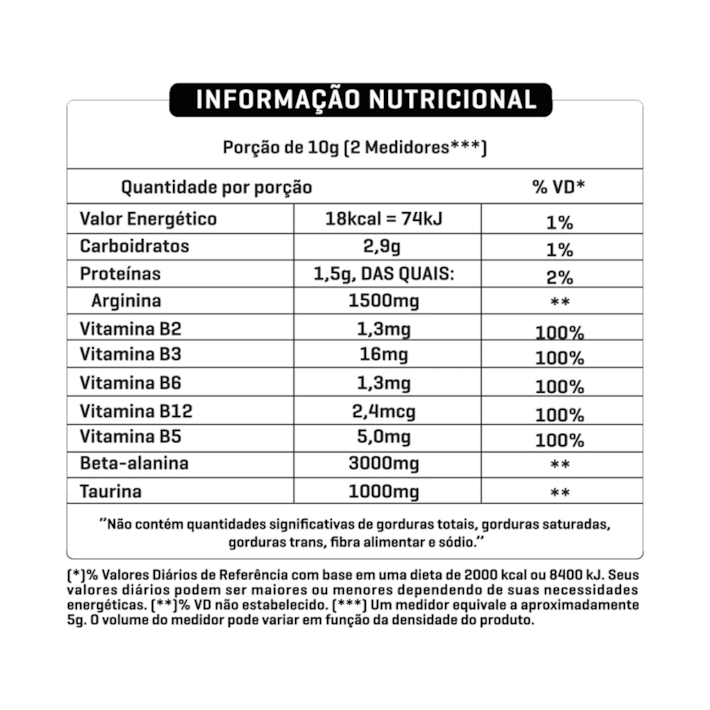 \r\n• 1500 mg de arginina: potencializa o fluxo sanguíneo e promove vasodilatação, garantindo maior oxigenação muscular durante o treino.