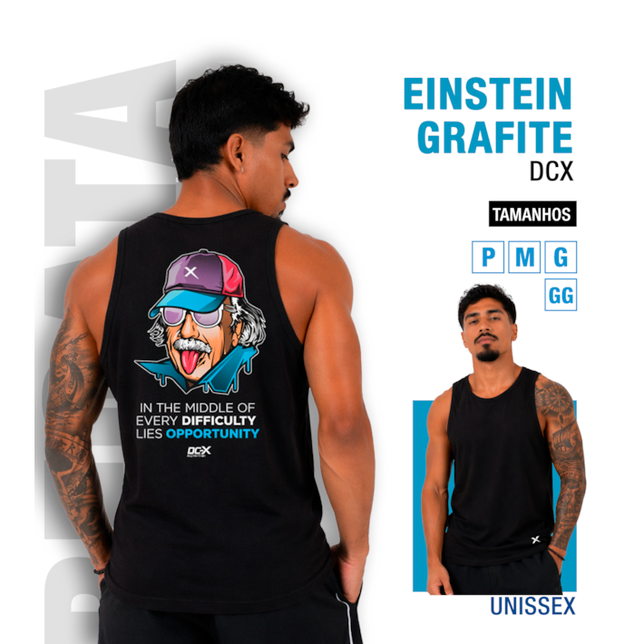 \r\n\r\nA Regata Machão Einstein Preta foi feita para quem quer liberdade total de movimento e um visual que impõe presença. Com modelagem solta e tecido leve, ela acompanha seu ritmo sem limitar, mantendo o foco no que realmente importa: desempenho.