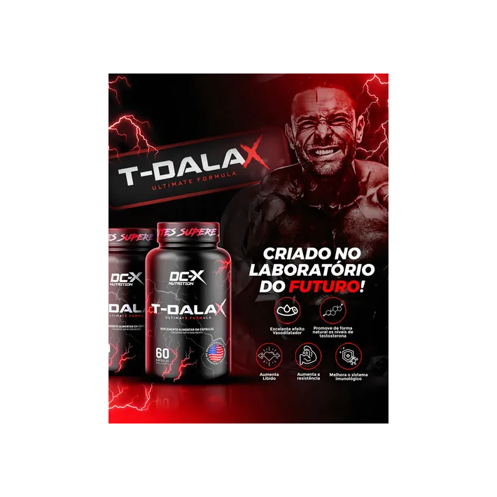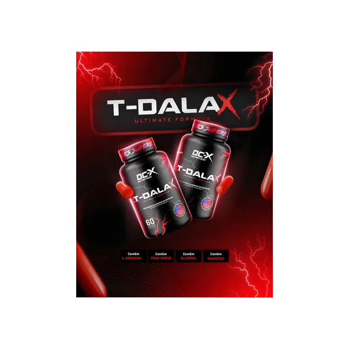 O T-DALA X da DCX NUTRITION é um suplemento natural formulado para elevar o desempenho físico e mental. Contém L-Arginina e Saponinas (Glicosídeos de Furostanol), que apoiam a circulação sanguínea, saúde cardiovascular e equilíbrio hormonal, promovendo crescimento muscular e melhorias no desempenho.